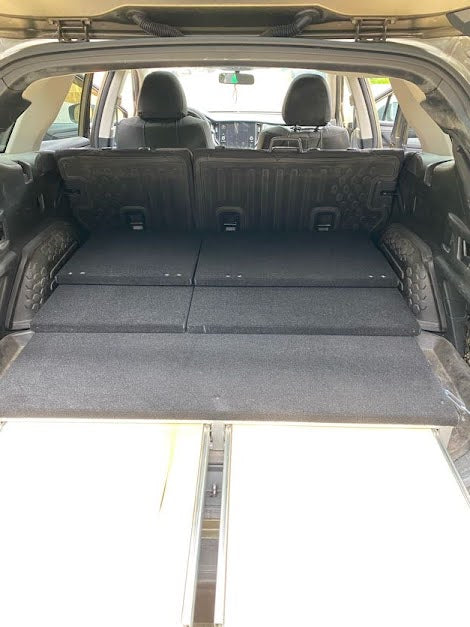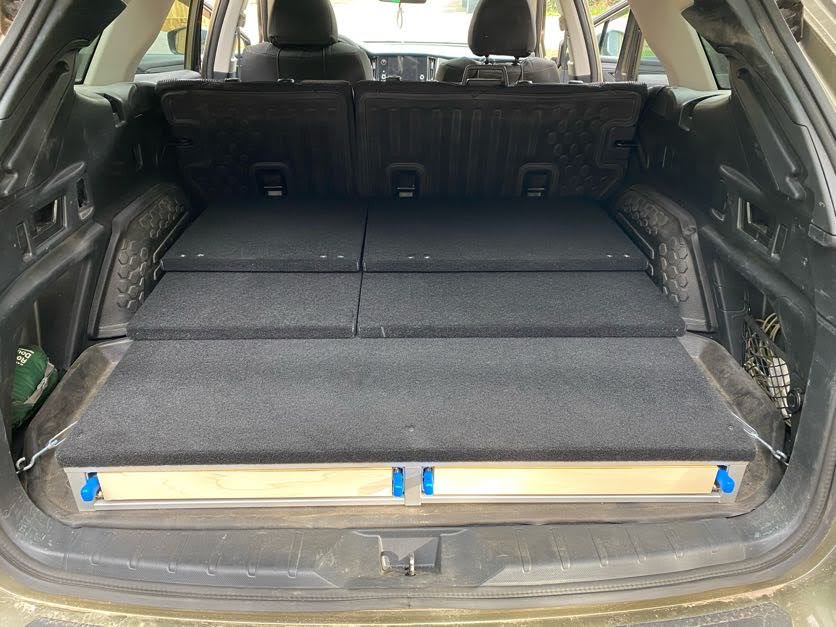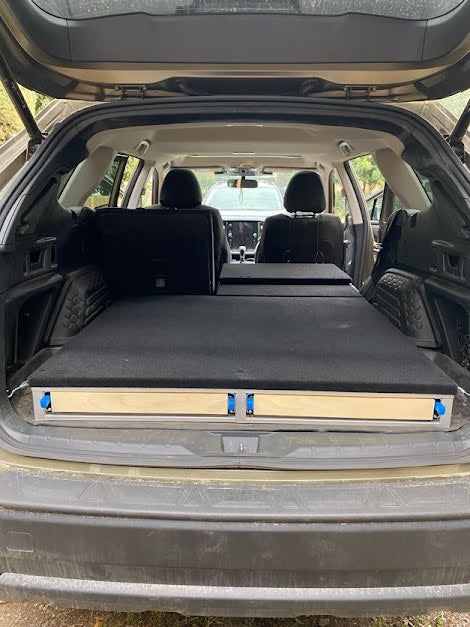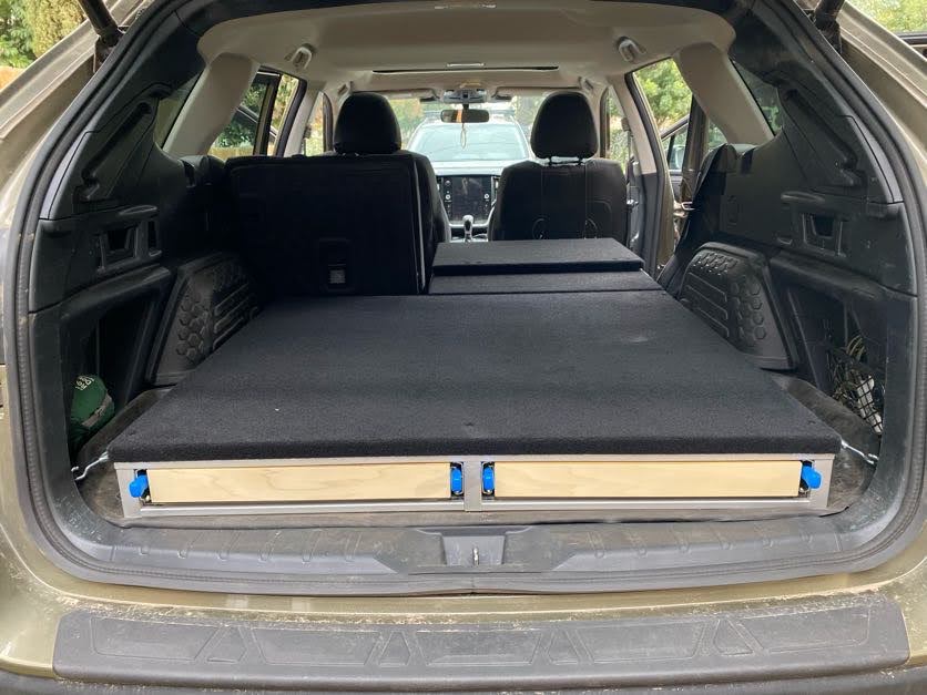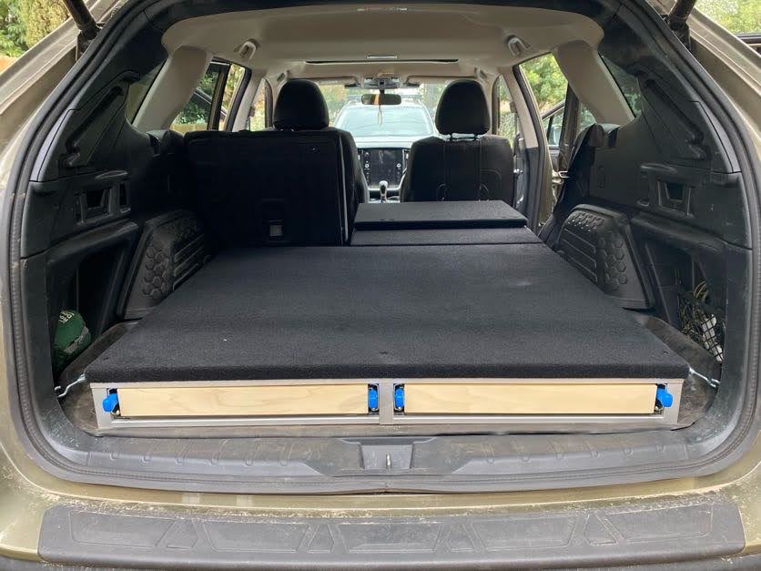 As soon as I saw Compass Camper, and the beautiful drawers, I knew this was what my Subaru Forester Wilderness needed. Ordering was quick and easy, and it was ready for pickup sooner than anticipated. I drove into the driveway, and it was installed in less than 20 minutes. I have been loving the extra drawer storage, and have used the split sleeper to storage skis inside on trips. I had a flat tire, and had to remove the camper at Les Schwab to access the spare, and it was pretty quick and easy. I haven't had the chance to use the full camper feature yet, but can't wait to get it out on some adventures soon! So excited by this sexy upgrade to my already super sexy car.